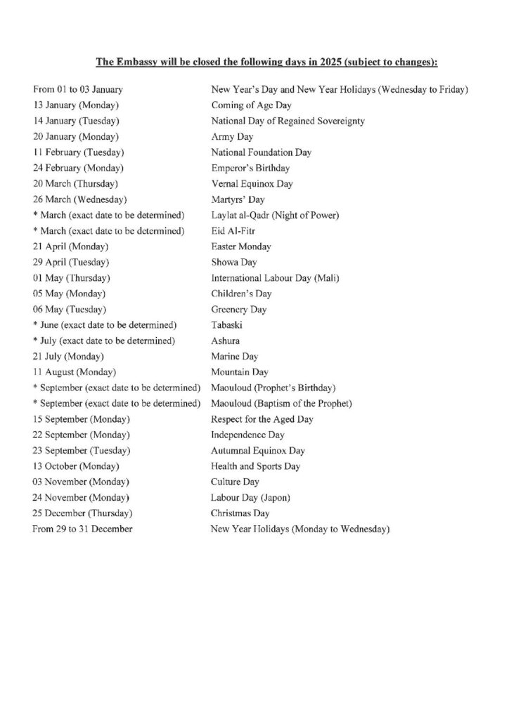 E-mail: info@ambamali-jp.org / Web site: www.ambamali-jp.org